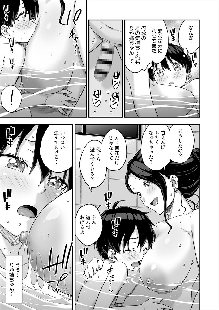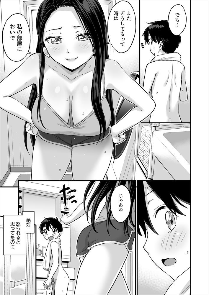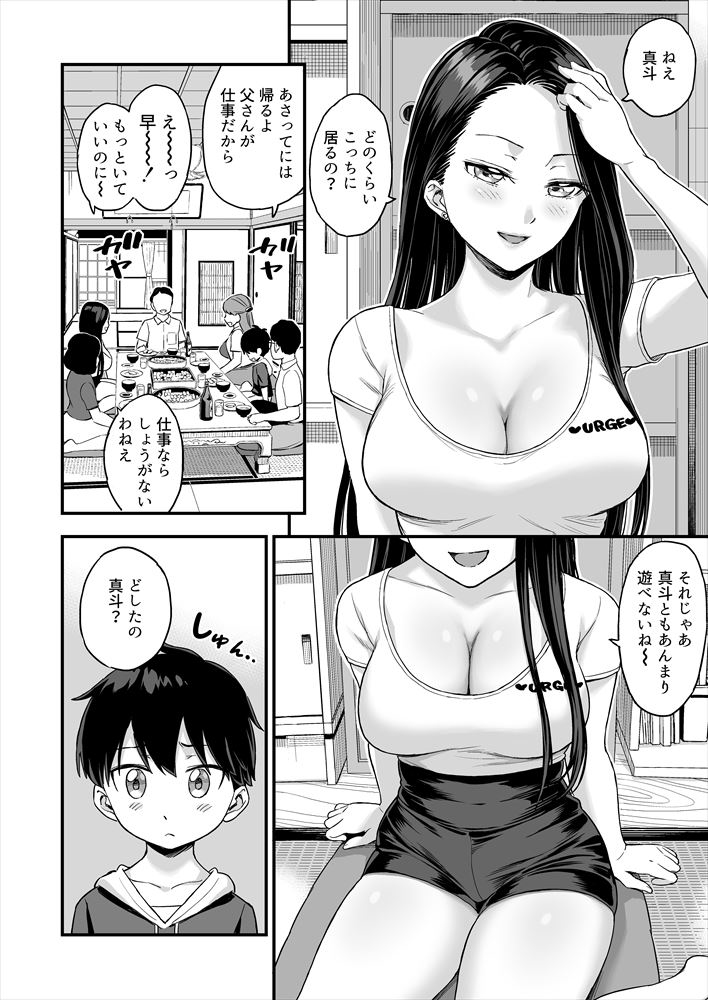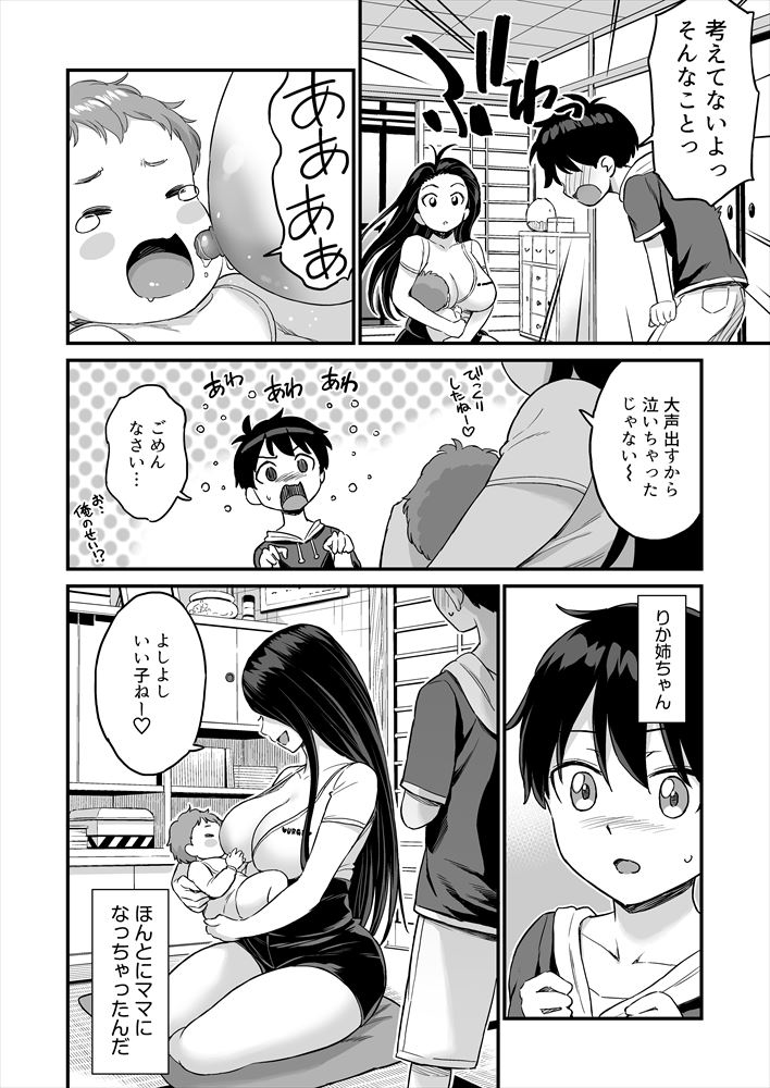 【エロ漫画】の作品内容:シングルマザーになった巨乳お姉ちゃんが赤ちゃんに母乳をあげてたらイトコのショ○っ子に見られた!興味津々で見ていたショ○っ子にも母乳を飲ませてあげてたら押し倒されておっぱいモミモミされてイチャイチャエッチしちゃう♡