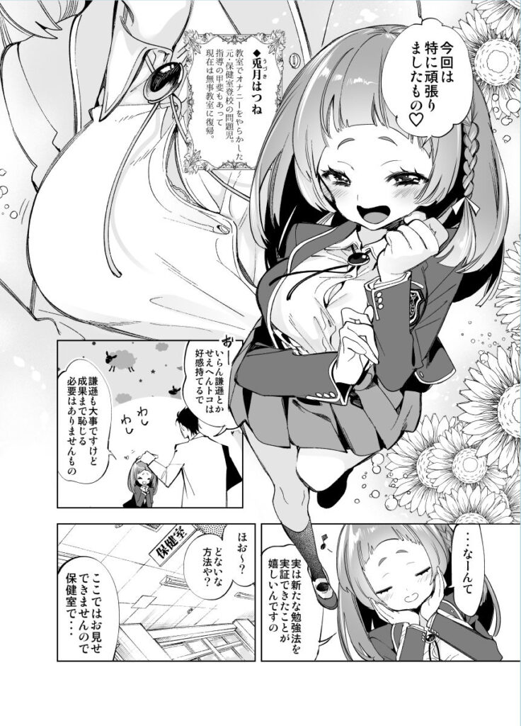 【エロ漫画】の作品内容:○校で保険医をしてるんだけど、オナニーばかりしている変態教え子JKにセックスの気持ちよさを教えてやった!おっぱい揉んだり乳首責めしたりチンポしゃぶらせて生ハメ中出ししたった!